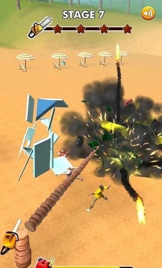 你需要完成所有的伐木任务,超多的关卡,解锁不同的工具吧.十分卡通的画面,巨大的树木并不是那么简单就可以砍伐的.完成挑战之后,可以获得许多的奖励,让你的伐木变得更加刺激.