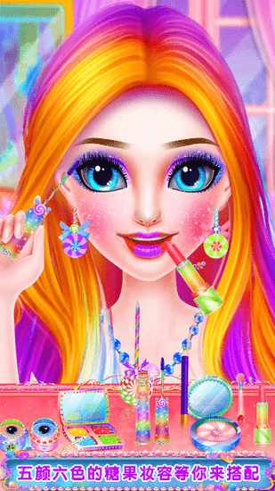 七彩糖果妆容打扮是一款非常好玩的装扮类型的手游,在这里玩家能够尽情的打扮这里的主人公,各种各样七彩的化妆品都能够随意的使用,还有非常多的好看的裙子衣服和鞋子等等也能够让玩家挑选,非常适合无聊的时候休闲放松一下,也非常的适合小朋友们。