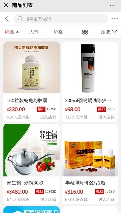 5、为用户提供店铺版块,在这里用户可以找到各种养生产品店铺信息;