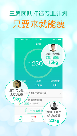 还在为满身的肥肉烦恼吗?还在为找减肥方法而晕头转向吗?还在因减肥的路上坚持不下去而沮丧吗?现在不用纠结了,乐檬减肥助手为你带来全新的减肥瘦身体验,科学计划真人示范,还有男神女神陪你一起减肥,想瘦就这么简单。