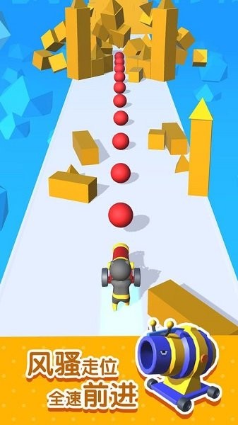 最强炮手是一款3D趣味休闲闯关游戏。玩家将控制角色推动炮车前进并且利用炮车粉碎沿途的障碍物,积蓄足够的能量即可释放终极技能,释放更强力的攻击,海量酷炫的游戏炮车等你来收集,发射炮弹将场景中的墙全部击碎,趣味的游戏玩法非常的解压。