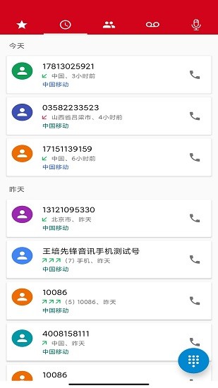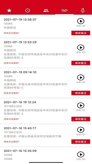 5、自动识别通讯录:通过手机上自带的通话录音功能获取通话记录与录音文件,方便手机拨号、查看。
