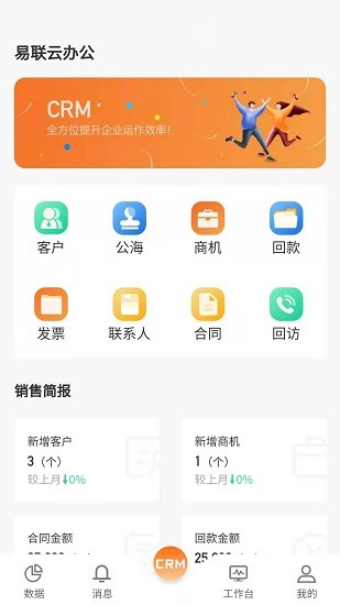 易联云办公官方版能够提高员工的办事效率,这里有非常多的功能,能够帮助企业更好的管理员工,并且这里还能够精准对焦客户,帮助用户找到最适合的客户,消息也能够及时达,不用担心会错过消息哦!