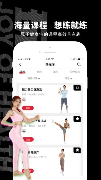 平台提供各式各样的健身课程,无论是健身前的热身运动,还是轻度健身,活动筋骨,还是锻炼体格,增肌减脂运动,平台应有尽有;