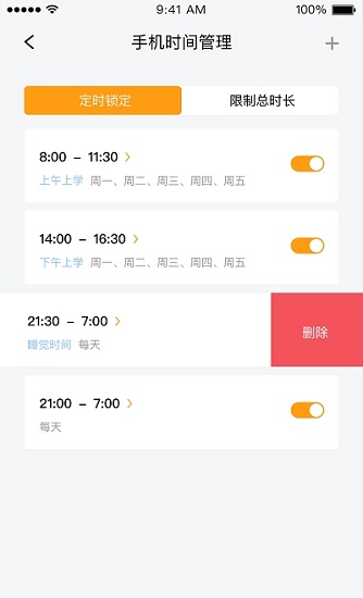 4. 时间管理,对孩子使用手机时间进行管控,包括设置禁止使用和允许使用的时间