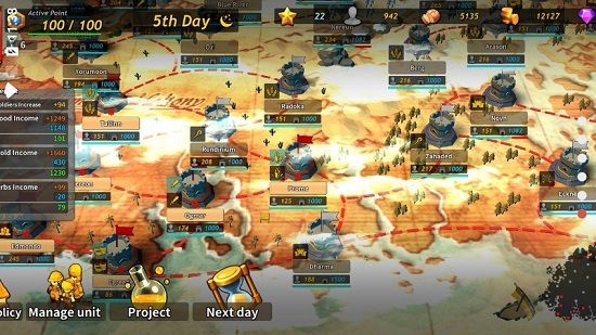 5、必须执行部队训练、市场、粮食生产、招募、城墙加固的政策,以开发土地和招募士兵进行战争。