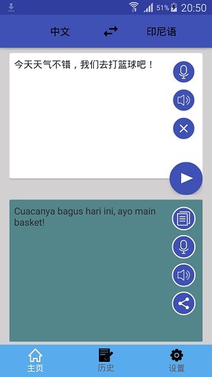 2、语音朗读,语音播报翻译后的中文和印尼语。