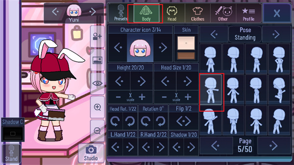 6、如点击上方的【body】按钮,选择好之后向会出现各种不同的动作,可以选择一个你喜欢的动作。