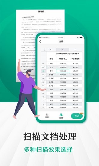 1、操作便捷,是您的绝佳的扫描神器,集文档扫描,图文识别,pdf转word等多种格式及证件扫描等多功能为一体的智能扫描软件;