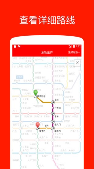 软件支持全触屏操作,轻松快捷获知地铁换乘的路线方案,并可获得详细的搭乘时间、票价、途经站点、首末班车时刻等。