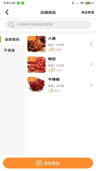 3、全部正在销售中的商品能够实时管理,随时可以查询商品信息。