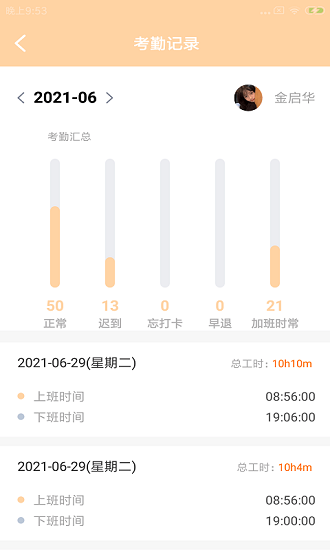 3、能够让自己的领导清晰地了解到项目的进度,而且在线就可以进行打卡,详细的记录下自己的考勤.