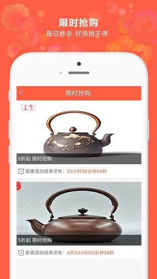 2.每日还会实时的为用户推荐一些限时秒杀抢购的活动,活动力度特别的大.