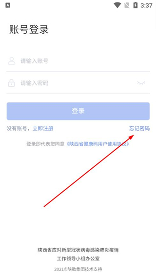 1、在陕西健康码管理的账号登录页面,点击忘记密码选项。