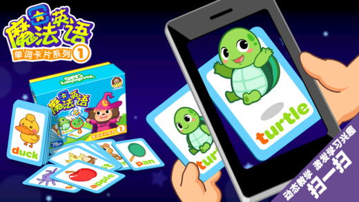 2,首创魔法英语学习卡片,扫一扫,卡片动起来,动态展示拼读全过程。