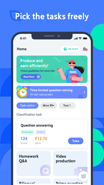 只需几步即可在平台上领取和完成任务。同时,由于所有任务都是在线分配和完成的,您可以随时随地赚钱!