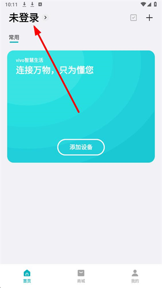 1、在vivo智慧生活界面中,点击顶部未登录区域,进入账号登录流程。