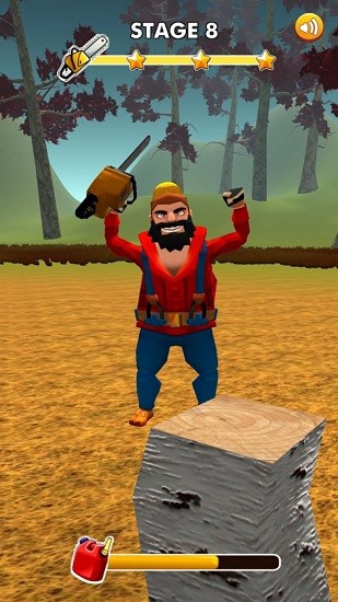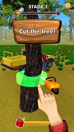 通过各种途径进行伐木。通过木柴的砍伐换取各种道具,比如更加强大的伐木工具,运送木柴的各种汽车。每一关的伐木任务都是可以进行星级评定的,努力砍伐吧获得更多的星星。