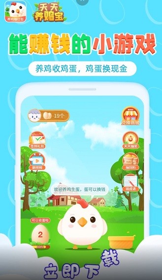天天养鸡宝是一款非常非常好玩的模拟养殖的手机游戏,在这里玩家能够领养一只自己的小鸡,每天只需要简单的喂养就能够让它长大和下单,还能够领取非常多的现金红包,既能够玩游戏还能领红包,小鸡长的越快就能够越快领到红包奖励哟。