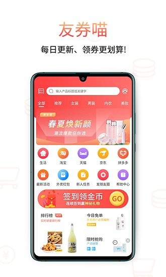 友券喵之中拥有大量的优惠券,你随时都可以进入软件之中领取购买,更多的优惠券可以带给你更加多的优惠,包含了多个平台的优惠券,随时为你发放使用,这是这么的舒适,还有众多的活动参与,领取到丰盛的优惠券奖励吧,你的购物能够以更加低廉的价格进行哦.