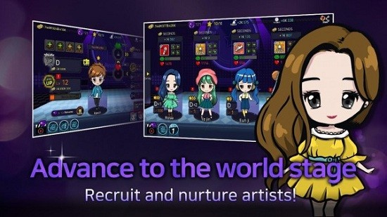偶像舞台IdolStage是一款经营管理类的休闲娱乐游戏。玩家将在游戏中创办一家经纪公司,你可以招收拥有不同才艺特长的偶像进入公司,不断地培养他们并让他们能够顺利出道发展,收获无数粉丝追捧。