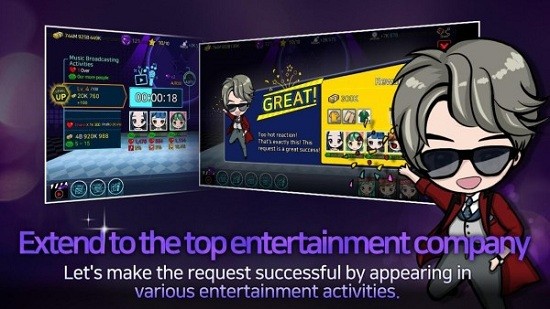 -通过娱乐活动,艺人可以获得粉丝,能力值和技能成长,外形变化时尚。