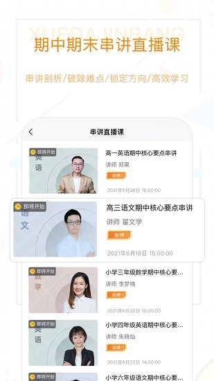 学大金榜app是一款中小学在线课堂软件。覆盖了全学科重点知识内容。采用视频直播授课形式为每一位学生传授课本上的知识。软件还提供了海量免费试题供学员们在线练习。进一步巩固课程知识!是学生们必备的网课app。欢迎使用。