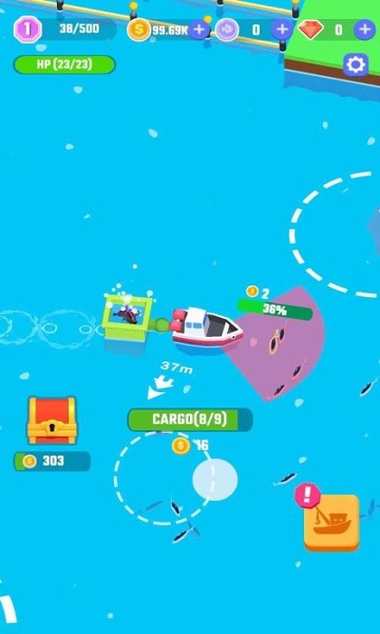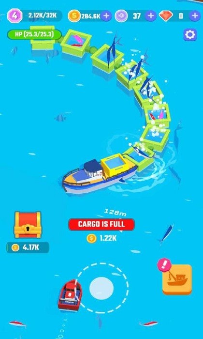 一款十分有趣的休闲游戏。在游戏中,玩家将操控渔船,把船开到鱼群处,渔船可以自动捕鱼,出售鱼类即可获得大量金币。金币不仅可以升级渔船获得更大的容量,还可以购买先进的捕鱼设备以加快捕鱼进度。
