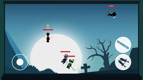 3.火柴人同时战斗,相互射击,武器会随掉落,包含了狙击枪.喷火器.冲锋枪等多种武器