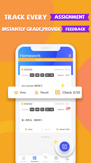1、查看排课课表,跟踪每周的教学目标和家辅建议。