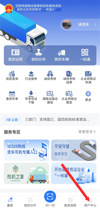 1、打开道运通APP,点击右下角用户中心,进入个人中心页面。