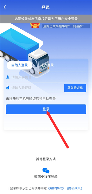 1、打开道运通APP,在用户协议和隐私政策弹窗中点击同意。