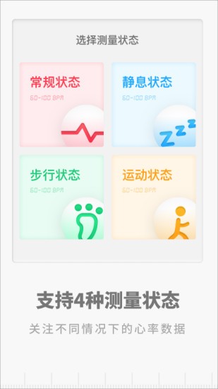 您可在不同状态下测量,如:常规状态、静息状态、步行状态、运动状态,观察自己的心率变化。
