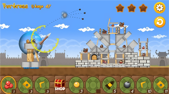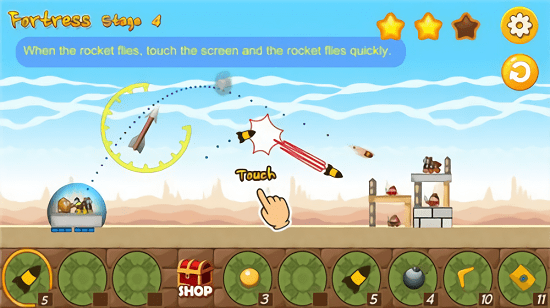 2、每一个级别中都有数量有限的弹药,就像是玩愤怒的小鸟一样,突破障碍物成功消灭所有的敌人