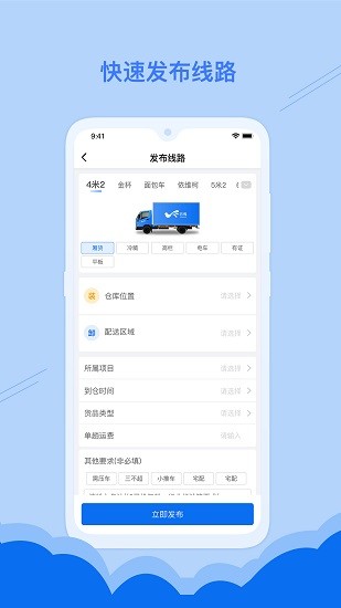 3、用户可以在这里快速发布订单路线,无论是什么类型的汽车都可以进行个性化定制,让汽车和货物可以及时地送达目的地。