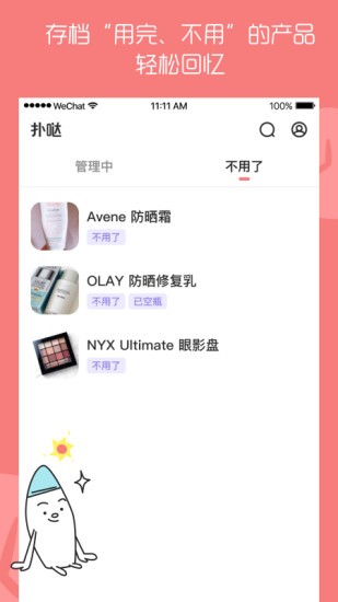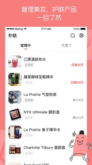 “无网络”,不焦虑:你可在无网络环境下离线使用扑哒管理化妆品、接收过期提醒等功能。待网络恢复后,扑哒会自动上传同步你的数据变动。