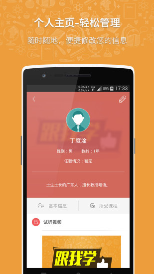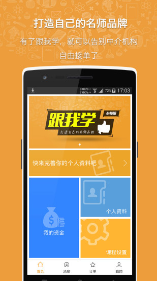 跟我学老师版是一款教育学习类手机软件,老师可以在这里查看自己的课程安排和资金情况,还可以在这里时时与家长和学生进行沟通,以便更好地管理和安排自己的时间和课程,欢迎大家下载体验!