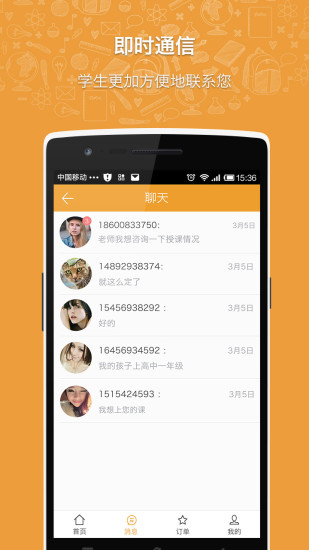 3.实时通讯:用跟我学,与家长、学生便捷沟通。