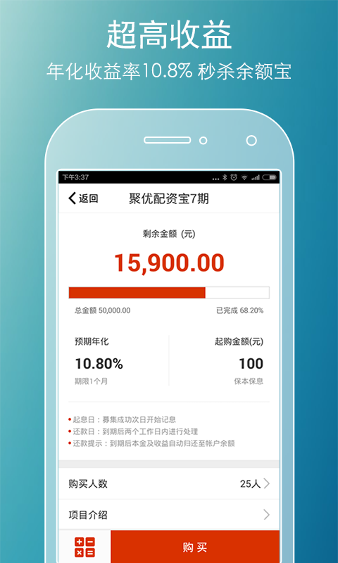 聚优理财是基于互联网技术的优选理财平台。秉承“汇聚财富,优中选优”的理念,为您提供高流动性、高收益的理财产品,一起分享大牛市盛宴,投资杠杠翻倍赚钱。