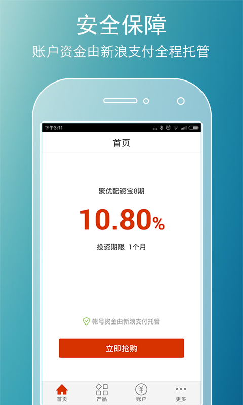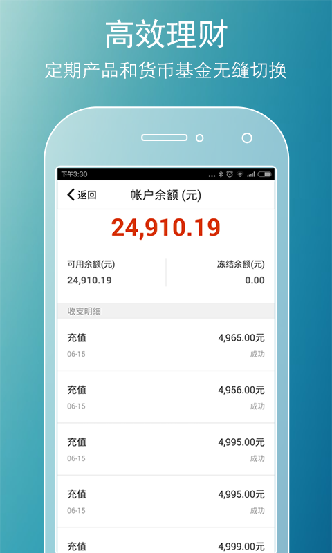 账户充值现金余额自动购买货币基金,存取免费,可享10倍活期收益;账户余额可无缝切换投资高收益理财产品,方便高效的实现资产最佳配置;