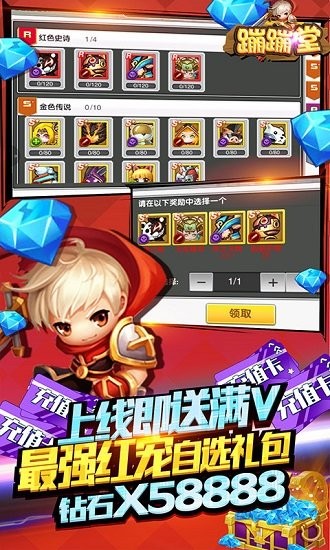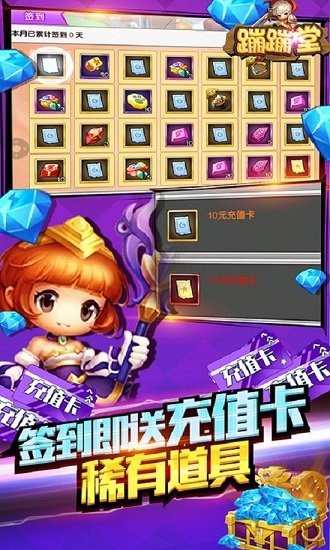 蹦蹦堂0氪送真充全新的变态福利版本,上线即送满级VIP特权与最强红宠自选礼包、58888钻石,签到即送高额充值卡与稀有道具,升级就送时装坐骑极品装备,各种送送送,无需充值就能体验到游戏内的所有玩法,非常的刺激!感兴趣的小伙伴一定不要错过了哦!