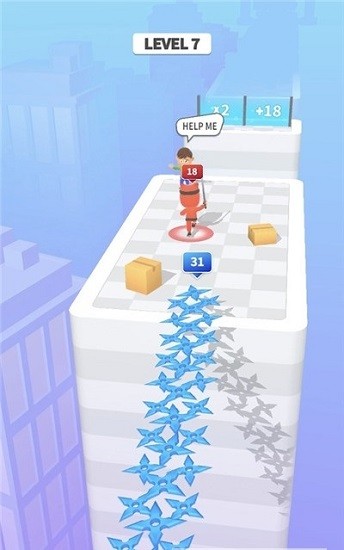 3、控制飞刀穿过翻倍区域,避开危险物以免被消耗,消灭刺客救出人质.