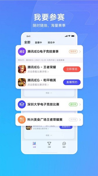 全民秒开赛游戏客户端非常的实用的电竞工具,腾讯官方打造如果你需要游戏比赛都可以通过平台来进行,参赛,观赛一个软件全部搞定让你也可以进行线下组队比赛相关的活动,非常的实用有需要的用户就来下载吧!