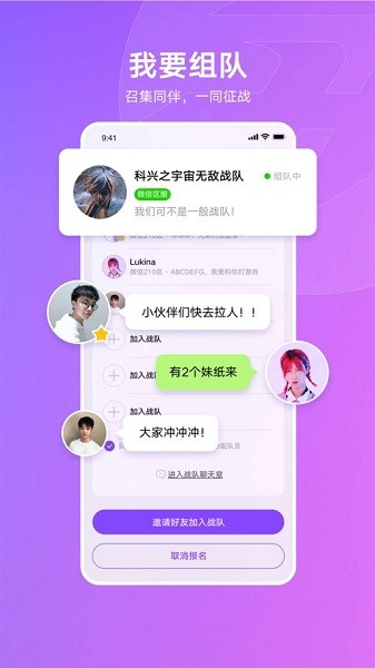 支持3款热门游戏,分别为王者荣耀、和平精英、荒野乱斗。快来邀请朋友一起组队报名,随时开黑!