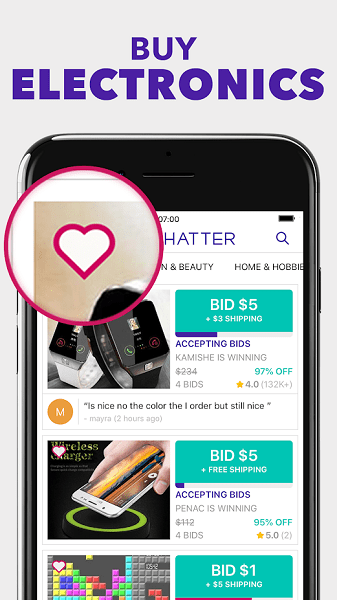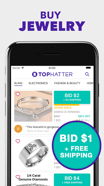 4、寻找拍卖或购买时尚商品、小工具甚至相机的每小时优惠?有了 Tophatter,找到储蓄和礼物再简单不过了! Tophatter 上的拍卖和固定交易是寻找有趣优惠、发现储蓄或以固定价格购买商品的最佳方式。讨价还价变得容易。