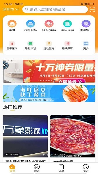 1、实时推送多方面的商品,包含了吃喝方面的、娱乐方面、生活服务方面的;
