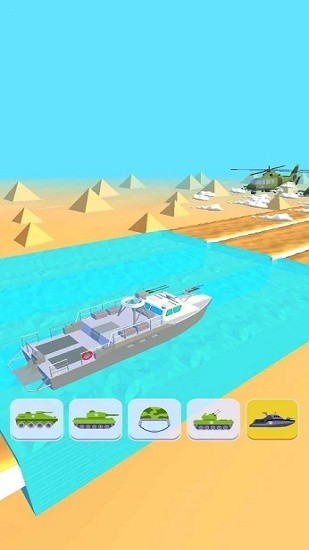 军事变换3D游戏是一款非常有趣的驾驶坦克闯关游戏,游戏中玩家可以驾驶坦克在跑道上进行闯关,在不同的道路上还可以切换不同的载具来快速通过,必须击败对手到达终点才能通关。