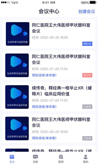 1、会议管理,自己创建的、加入的全部医学会议可以在此统一管理;