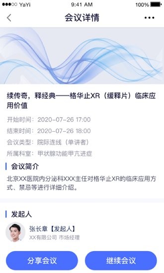 6、可以一键分享会议链接,会议链接可以分享给这里的任何医师;