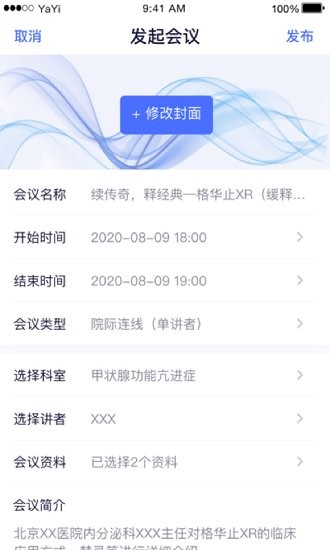 5、支持在线发起医学直播,用户可以体验实时的学术交流、讨论;
